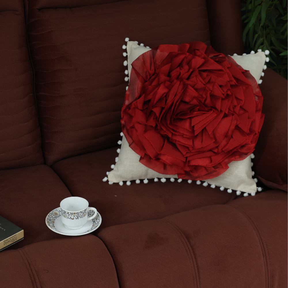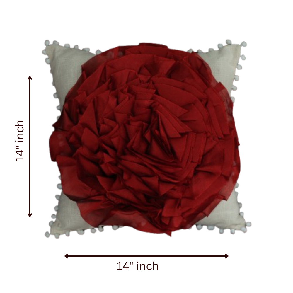Maark Decorative Cushion with 3D Red Flower Design & Cushion Filler: