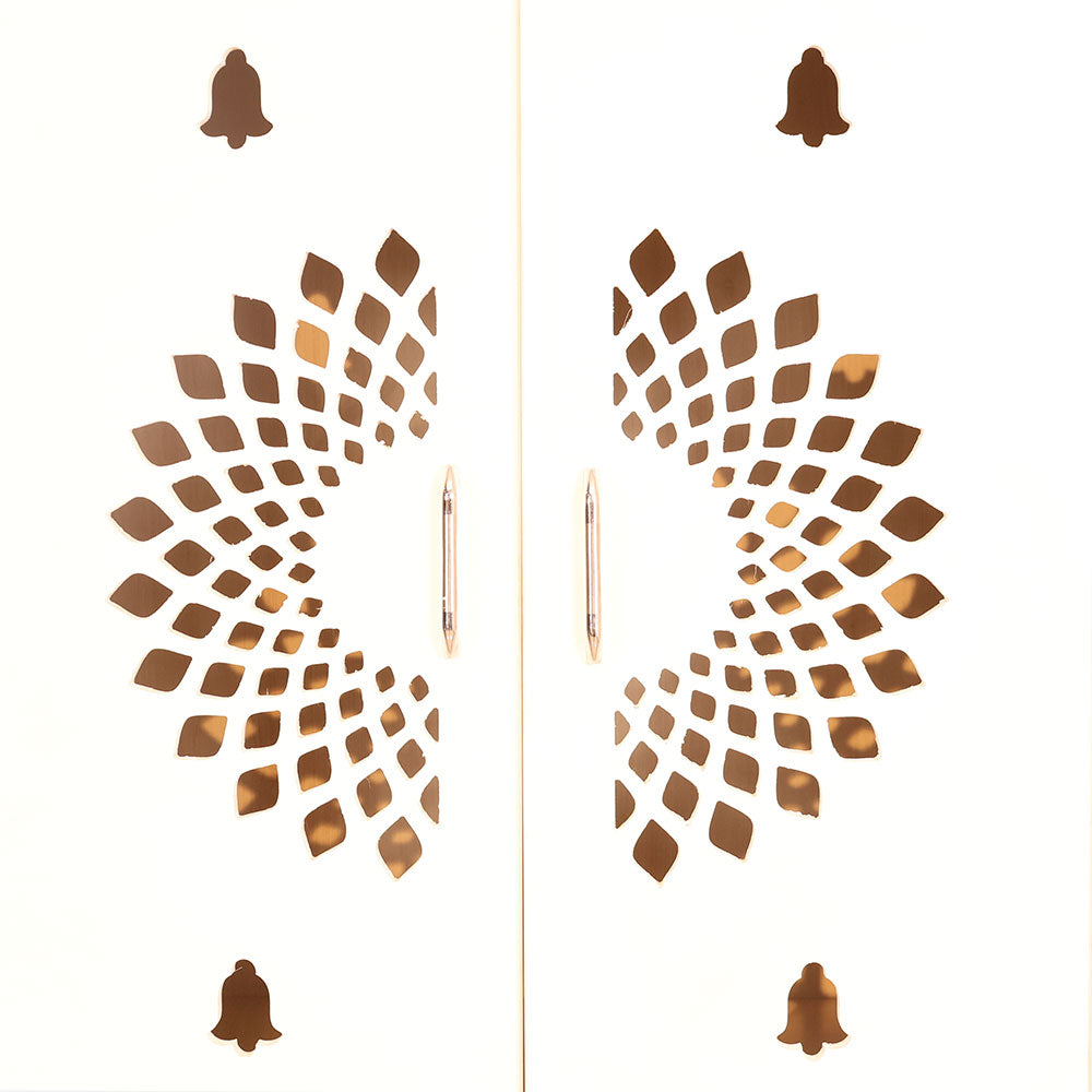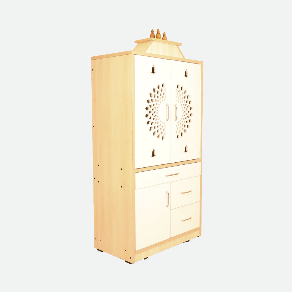 While the sturdy material promises long-lasting quality, its sliding doors provide the convenience of access and aid in keeping the puja items orderly.