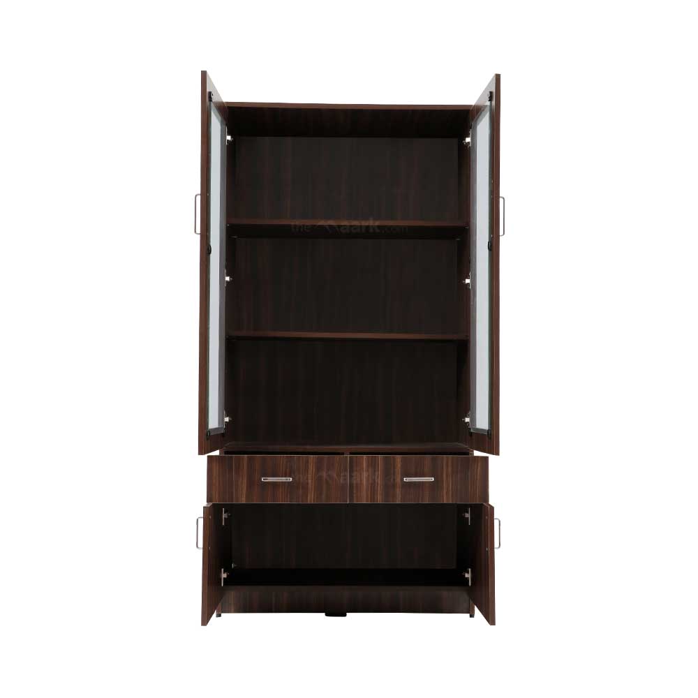 - The Maark Wooden with Glass Bookshelf is beautifully carved to keep your books organized.