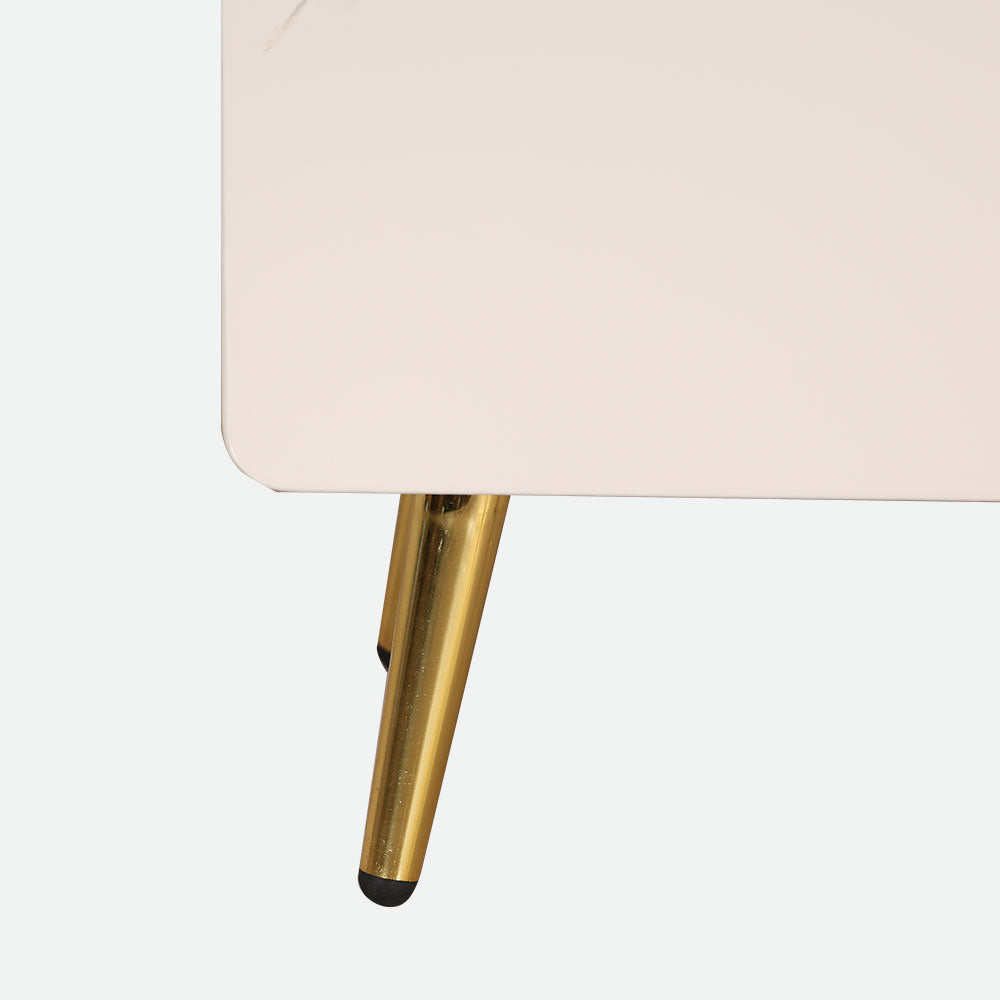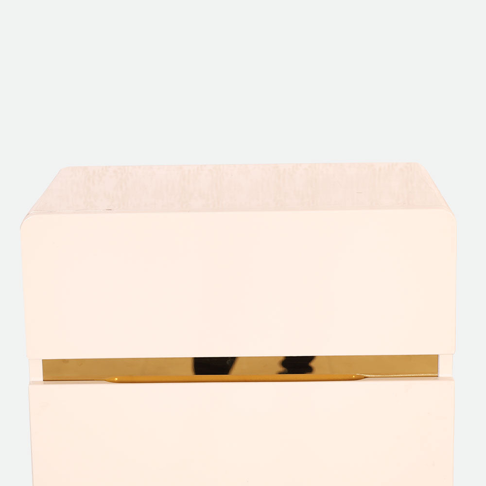- Having its elegant white high gloss finish and excellent engineered wood construction, it elevates any living room, hallway, or bedroom.