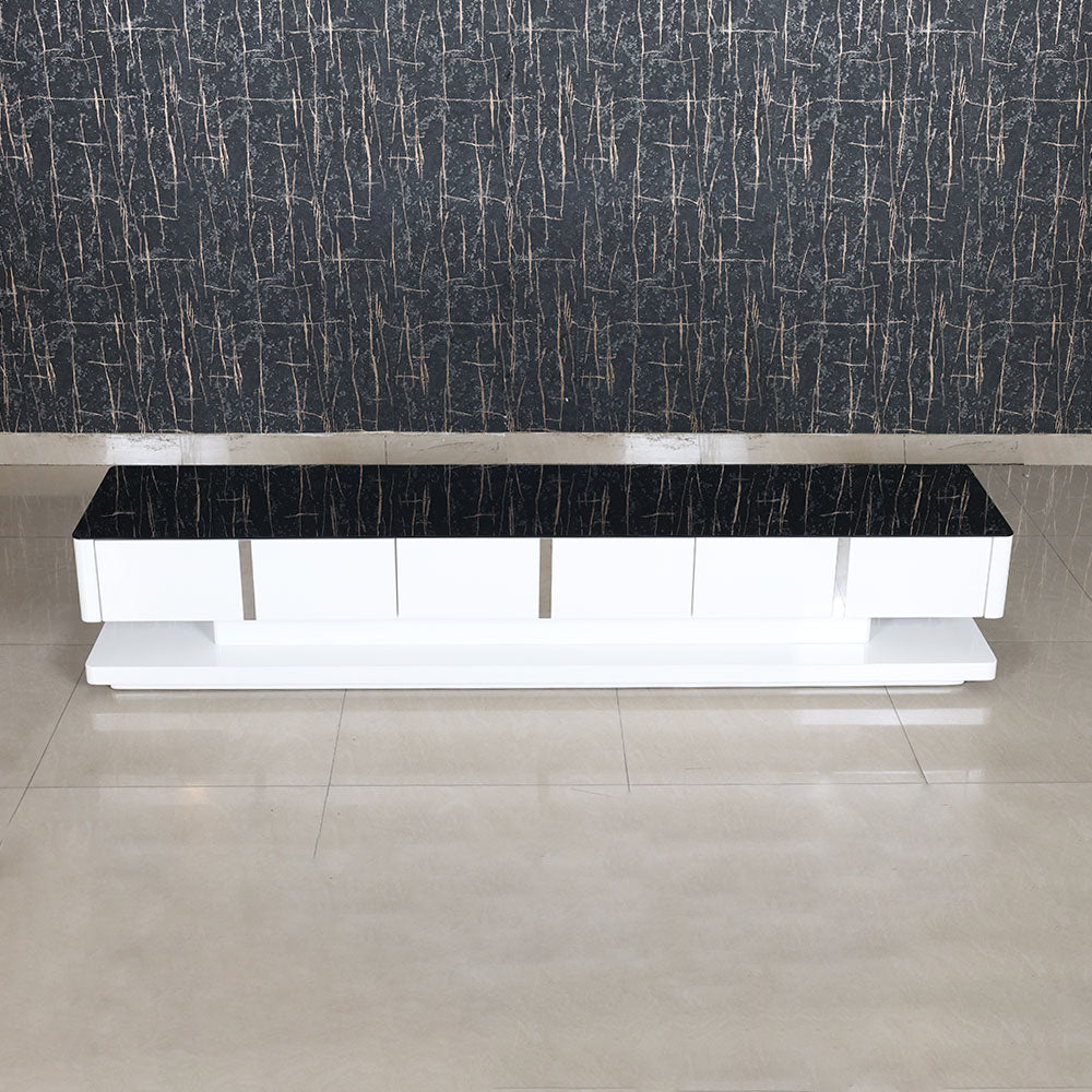 - This unit has a gorgeous black marble finish top and a glossy white base, creating a sumptuous contrast with clean lines.