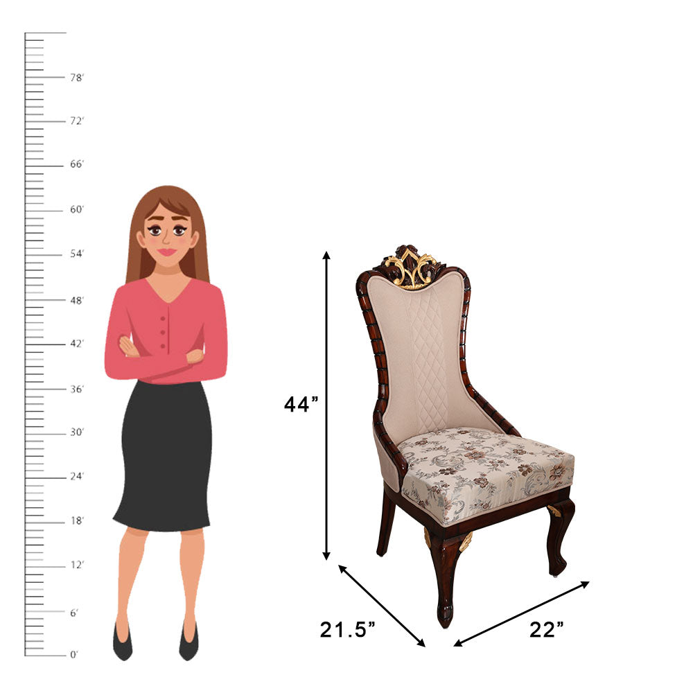 - The chair backs' elaborate carvings and plated accents give your dining room's design a royal feel.