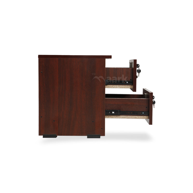 - Designed to complement modern decor, the MAARK Bedside Table with Double Drawers in Walnut is the ideal combination of style and functionality.