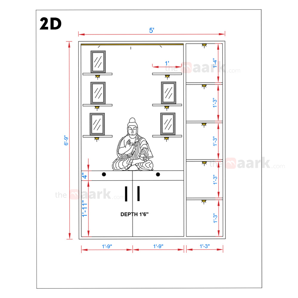 - This long wooden temple was built to be the perfect centerpiece of your house, providing enough room for several deities and pooja supplies.