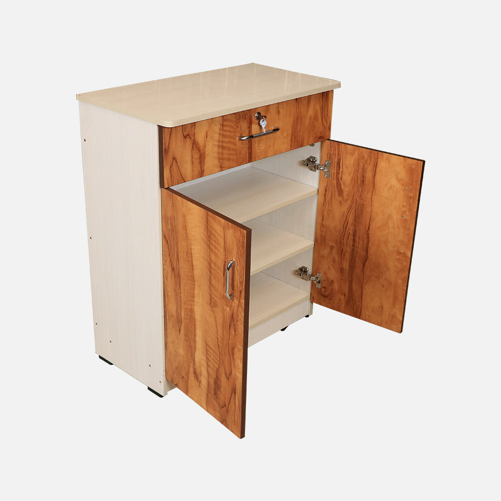 - Its two smooth-opening doors offer privacy and dust protection while facilitating simple access to stored goods.