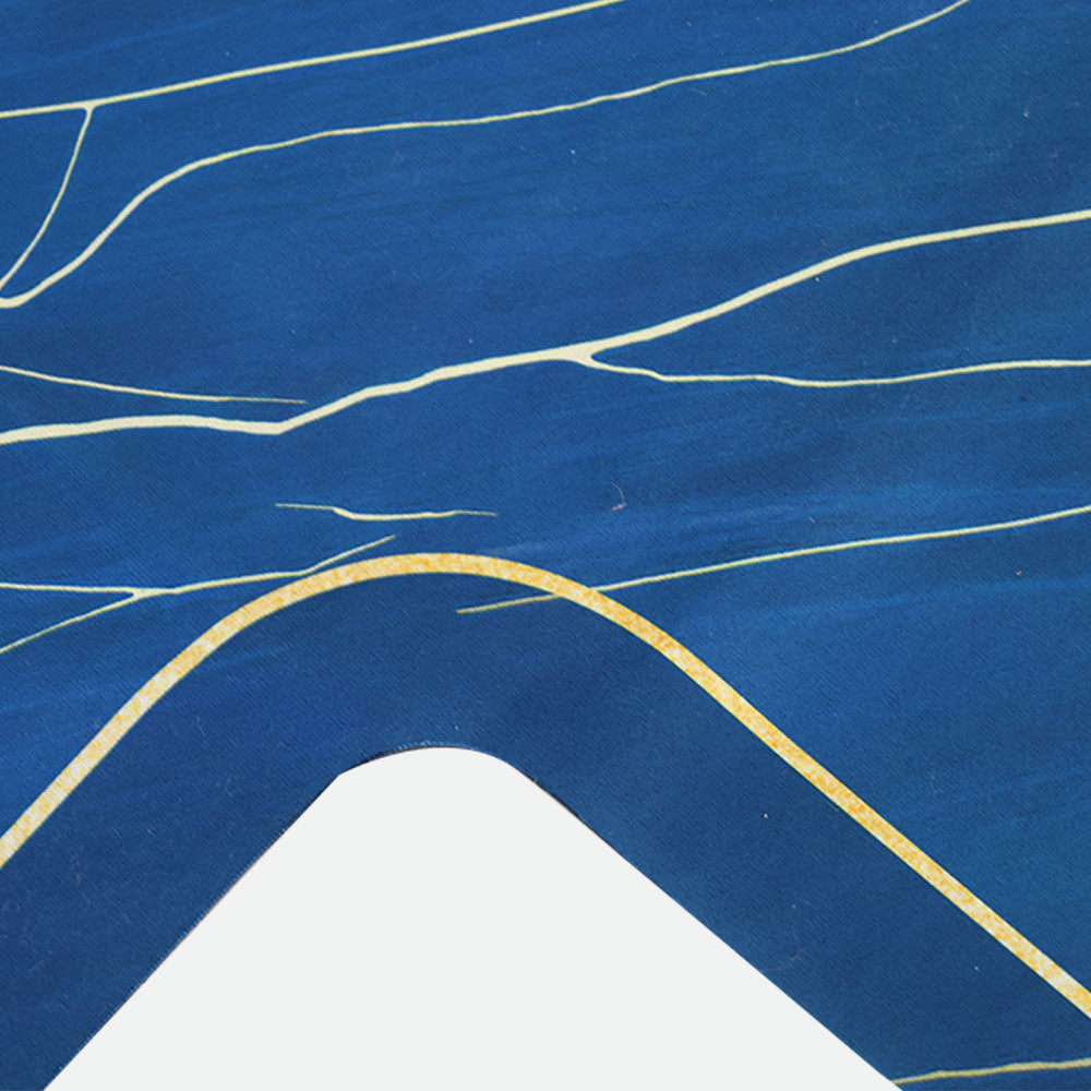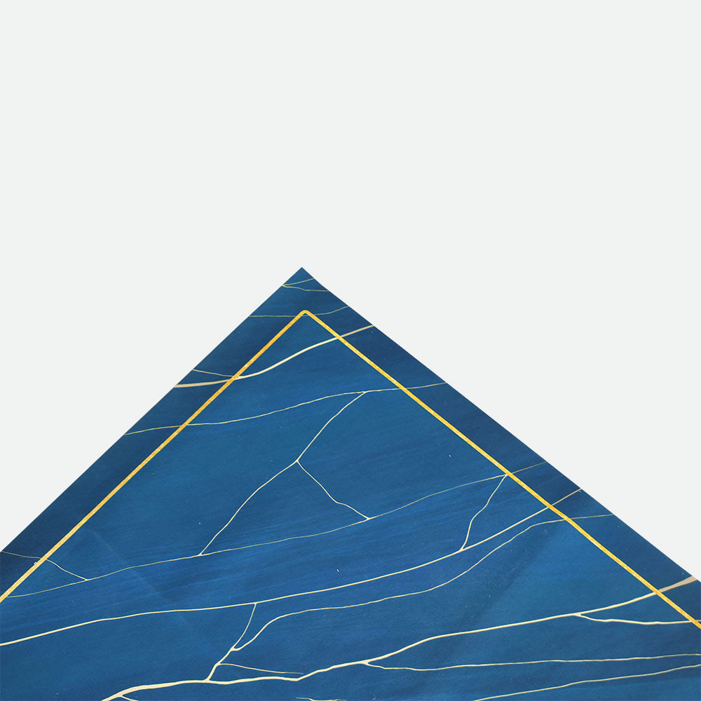 - This mat adds a touch of refinement to any contemporary kitchen with its deep blue marble design and delicate gold accents.