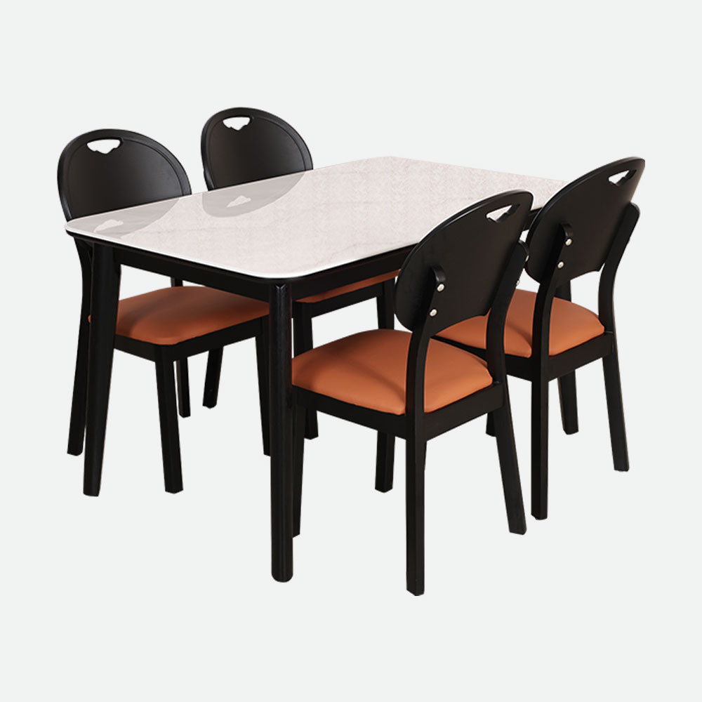 - The MAARK Marble Top 4-Seater Dining Set with Orange Chairs will add an elegant touch to your dining experience.