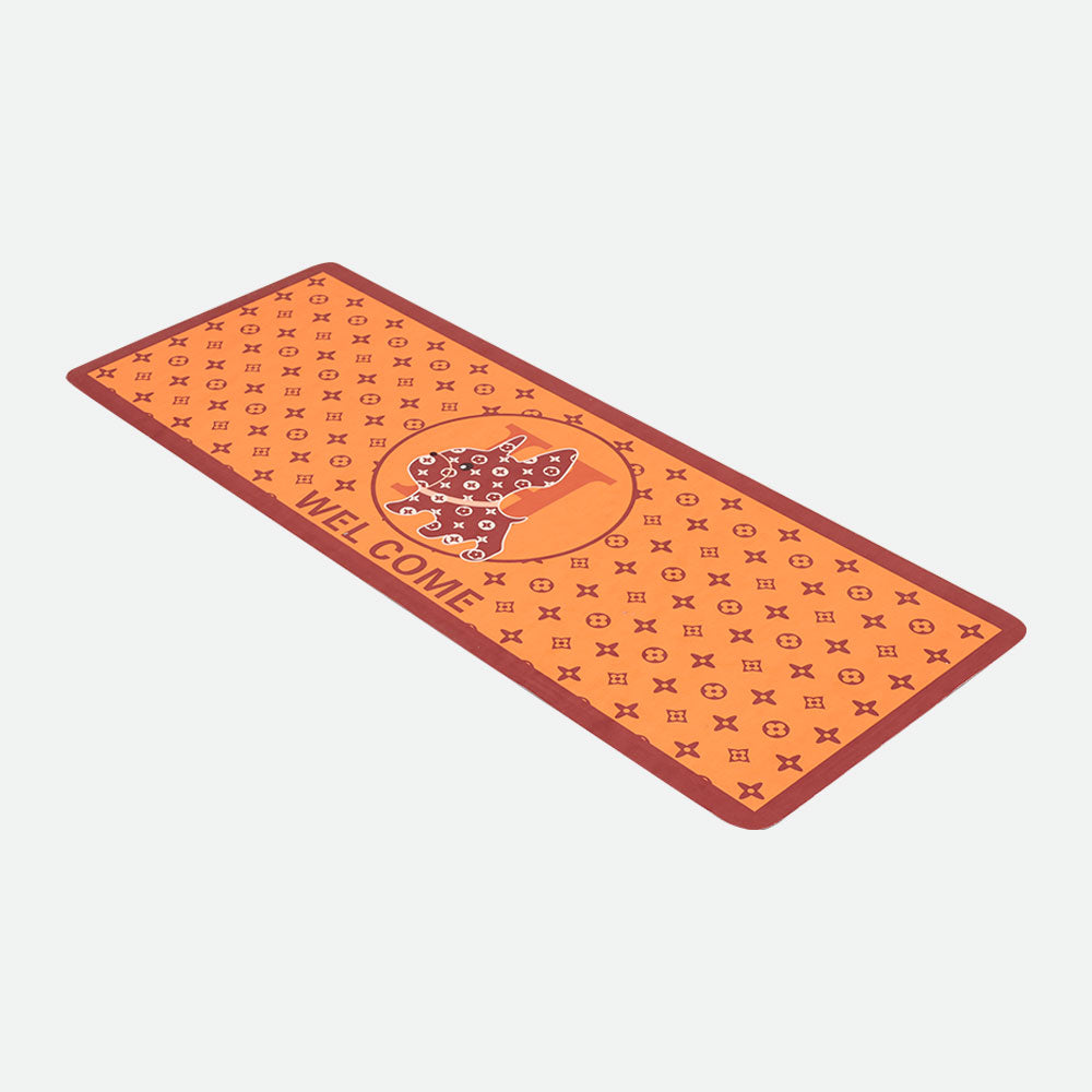 - Featuring an amazing Buddha pattern and a brilliant orange tone, this mat gives a touch of peace and beauty to your living environment.
