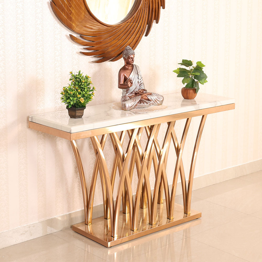 - Having a high-quality marble top and a modern, gold-finished base, the MAARK Marble Console Table will add a touch of luxury to your house.