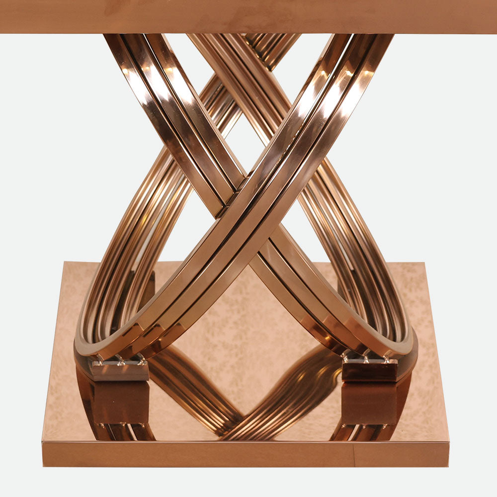 - This table combines durability and elegance with its elegant rose gold metallic frame and high-quality marble top.