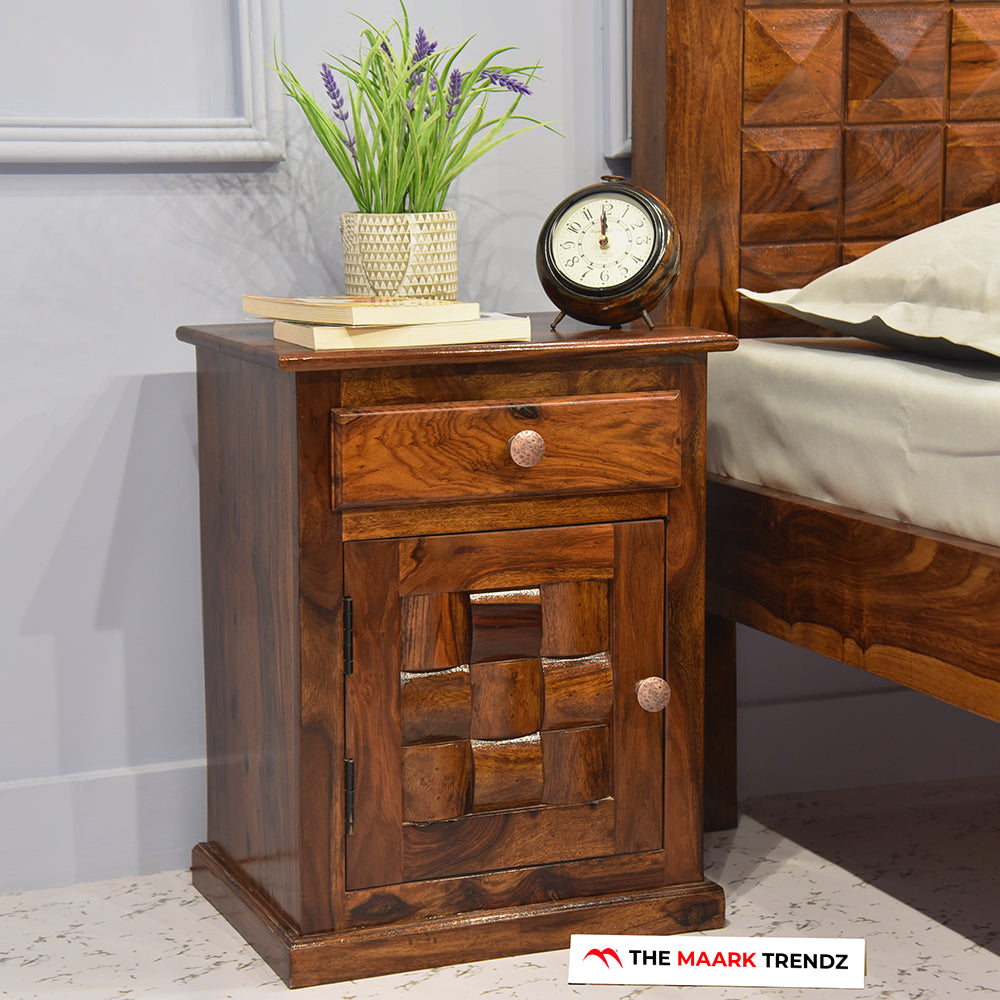 - A gorgeously designed bedside table that blends strength, style, and usefulness is the MAARK Sheesham Wood Night Stand Natural Finish.