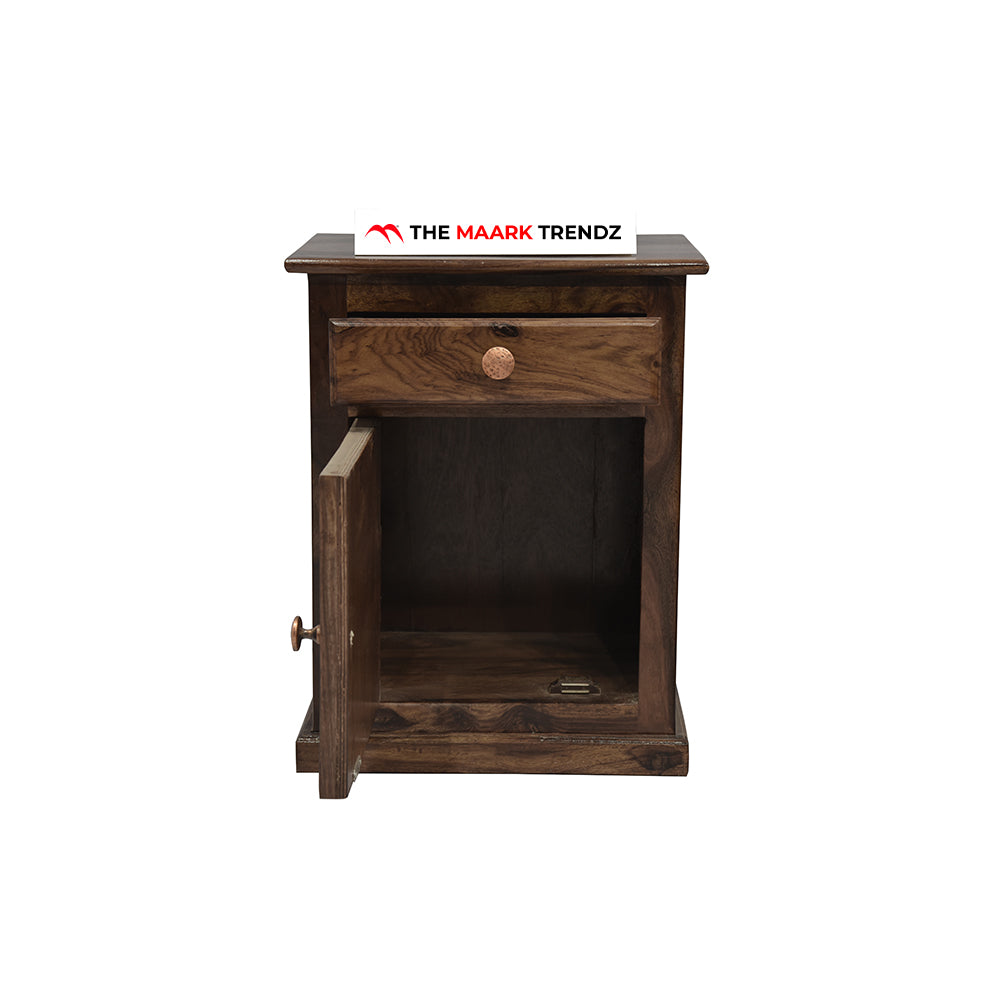 - The maark bedside table is made from high-quality sheesham wood and has a matte finish. Its elegant yet durable construction makes it ideal for any bedroom.