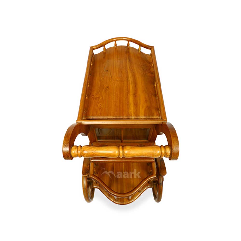 - This kitchen wooden trolley serves as a parlor trolley, a chic bar trolley, a practical storage organizer, and a guest serving trolley.