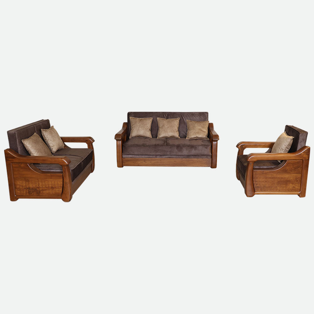 The Maark Wooden Sofa Set (3+2+1) 002 GI is a chic and adaptable addition that adds character to any living area and offers plenty of seats.