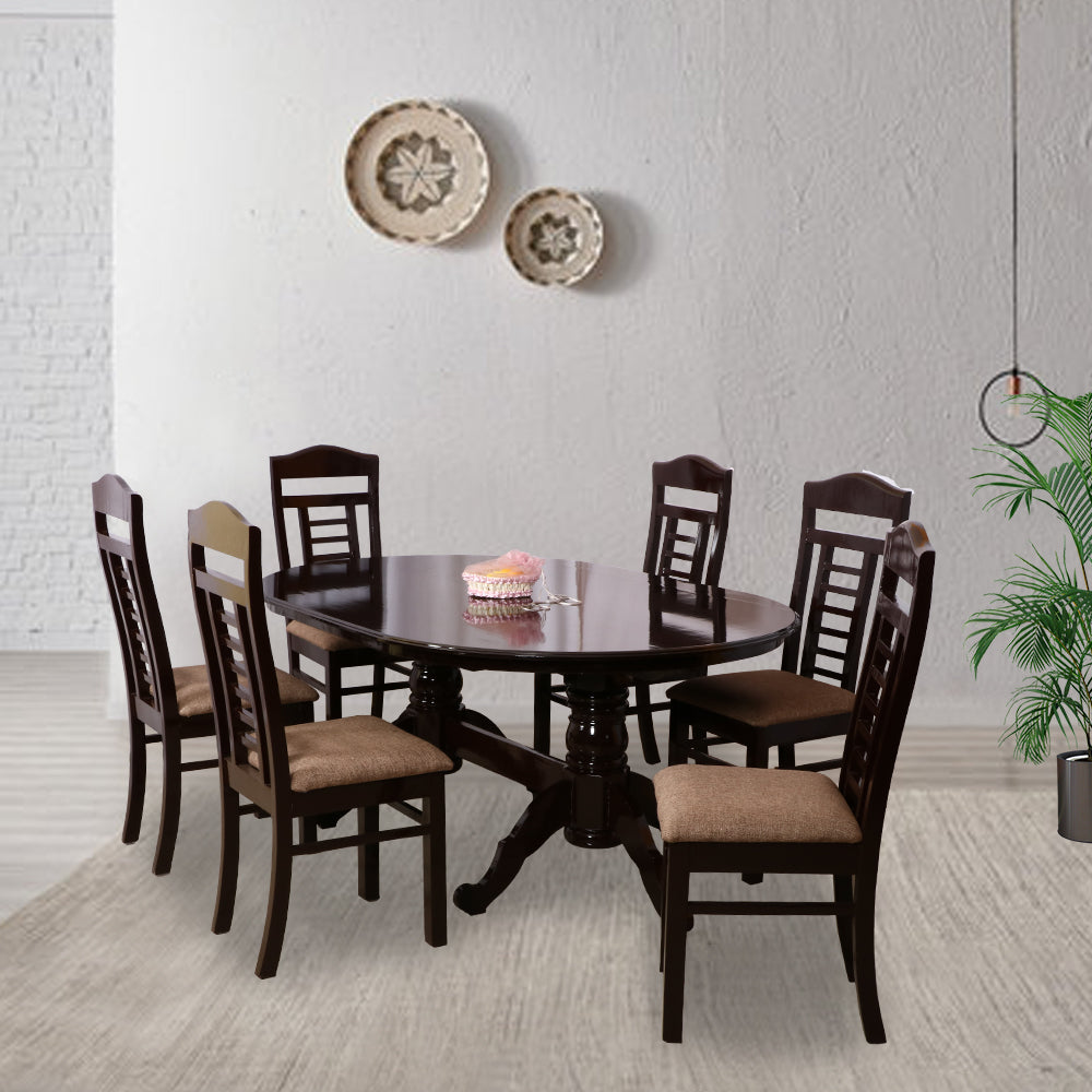 - Improve your dining experience with this amazing Wooden Top 6-Seater Dining Set in an elegant Oval Walnut Finish.