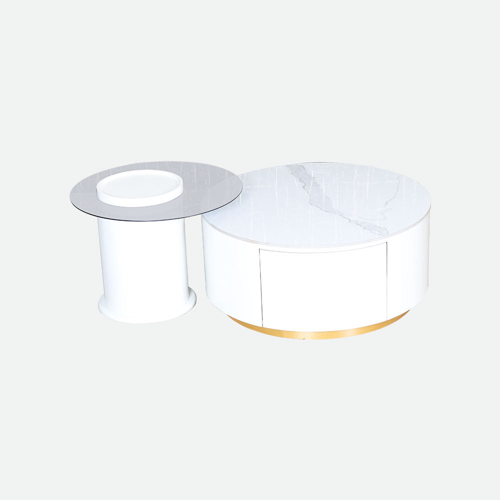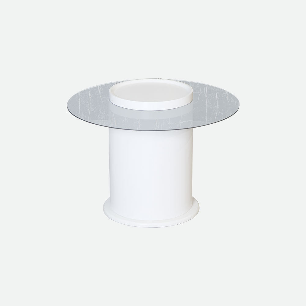 - Having its elegant circular design and glossy white finish, it stands out in any modern house and is perfect for serving guests, setting up décor, or just improving the look of your space.