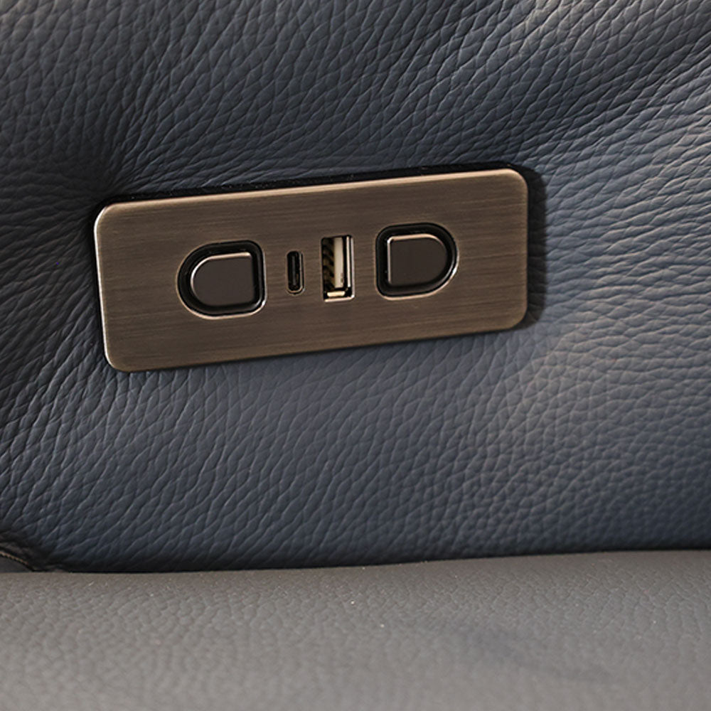 You may enjoy comfort and style like never before with the Maark Blue Motorized Recliner Leather Sofa Set.