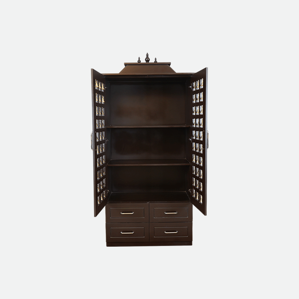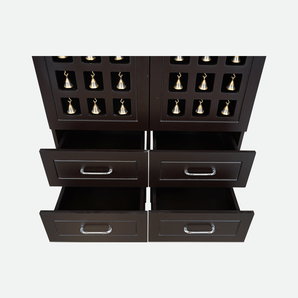 - Having a built-in drawer for extra storage, it's ideal for keeping tiny incense sticks, candles, or puja items close at hand.