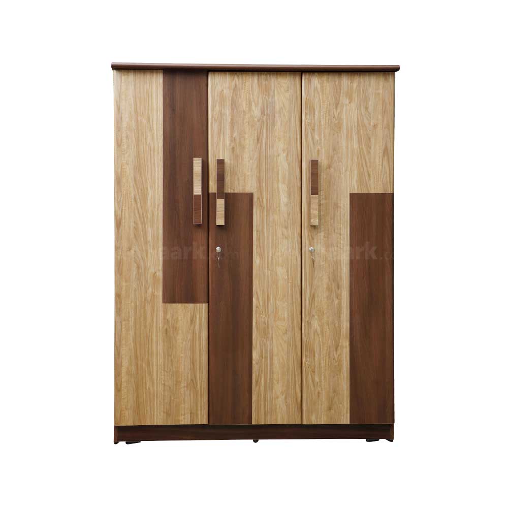 The maark three-door wardrobe has a protective plastic dressing for long-lasting durability and is protected with melamine materials.