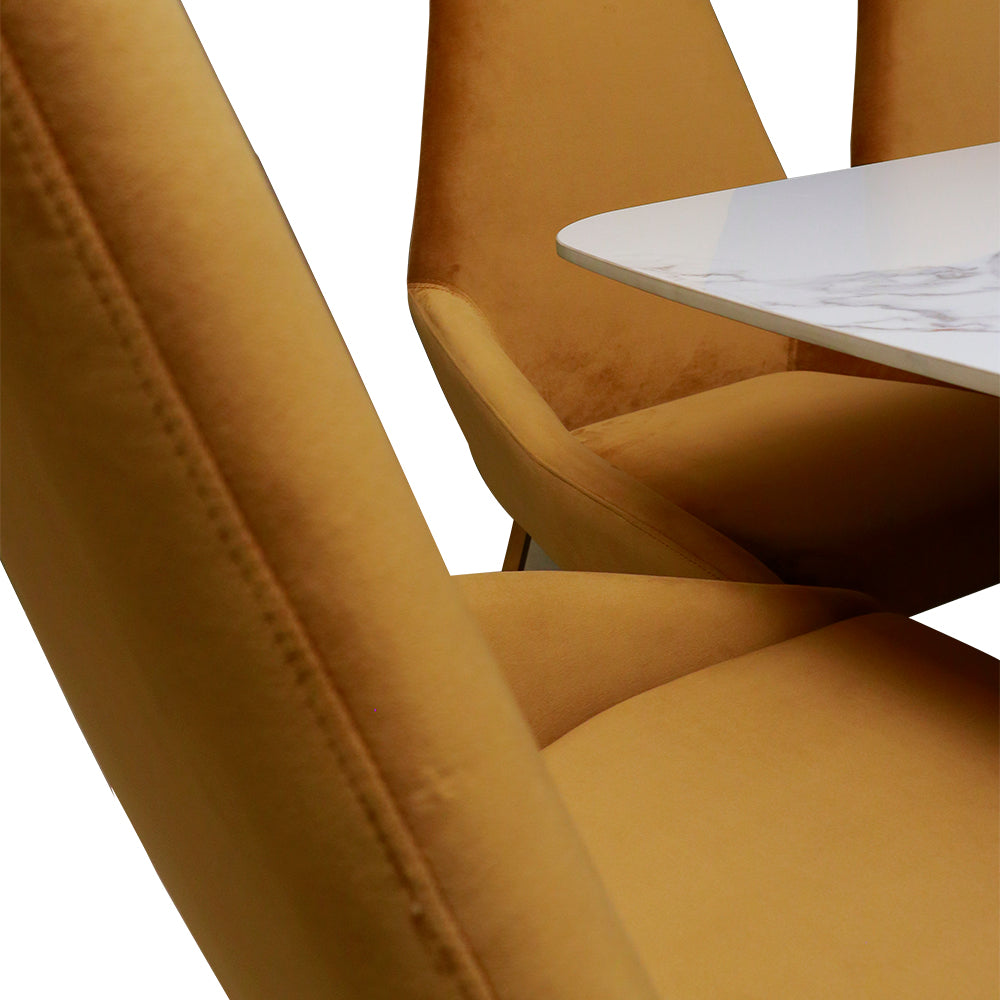 - Featuring a smooth, polished marble tabletop, this dining set reflects sophistication and timeless beauty.