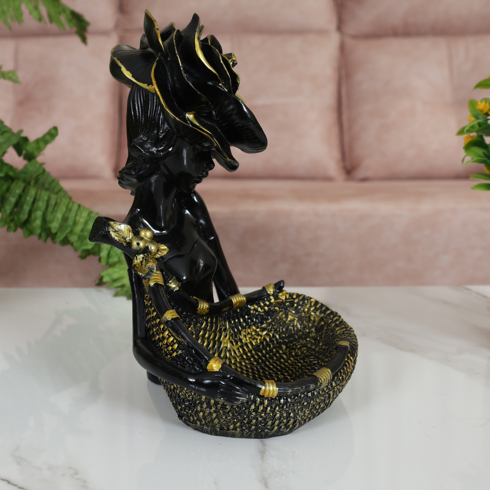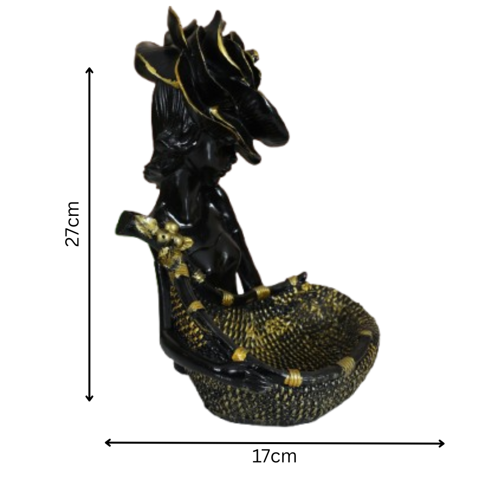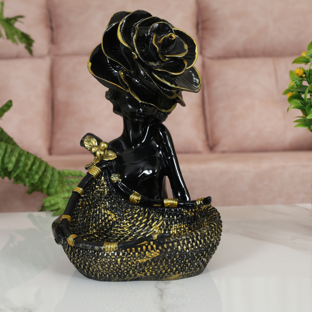 - This Black & Gold Lady Showpiece adds a touch of elegance and artistic charm to your living space.