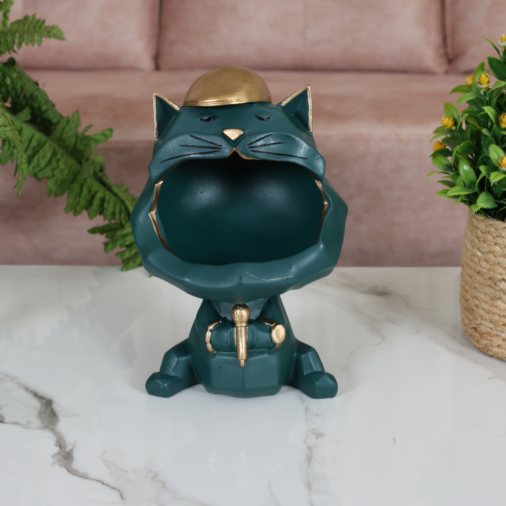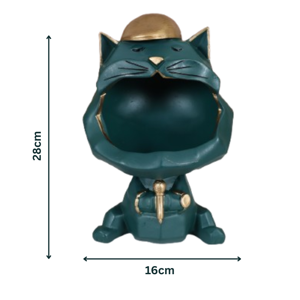 - Boasting its stunning golden crown, this Green Cat Showpiece will provide a playful yet stylish touch to your décor.