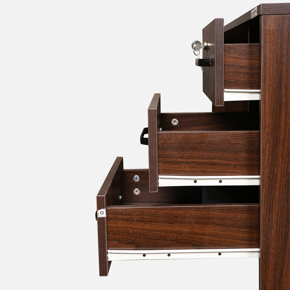 Maark Executive table made of pre-laminated particleboard. attached drawers for storage.