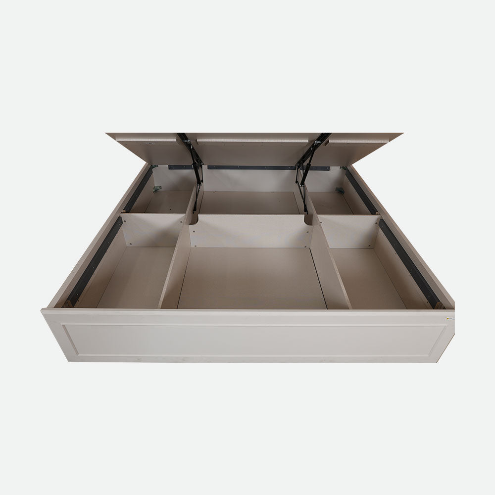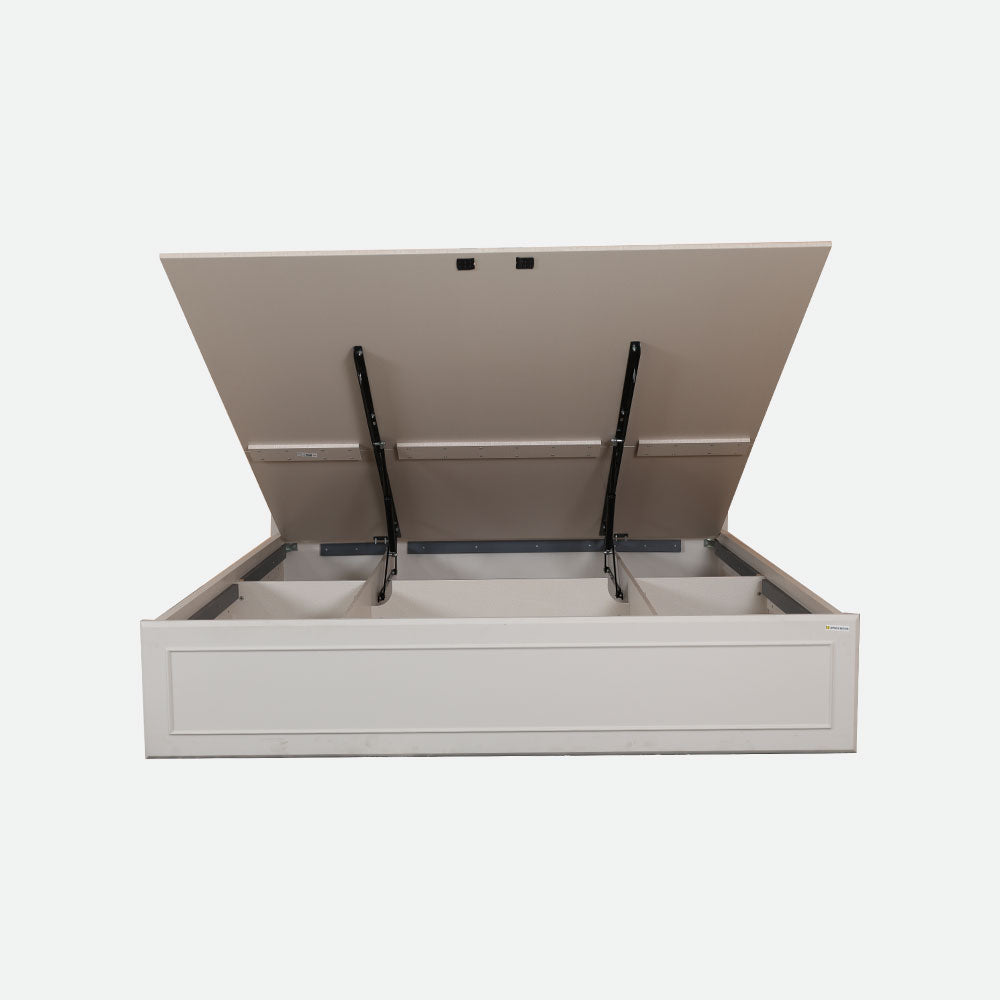 - Using its fully hydraulic lift-on mechanism, the Akira model offers convenient access to a roomy under-bed storage space, perfect for pillows, blankets, and seasonal necessities.