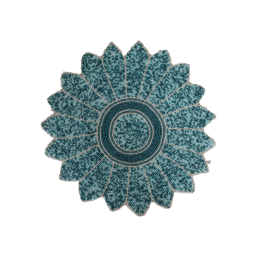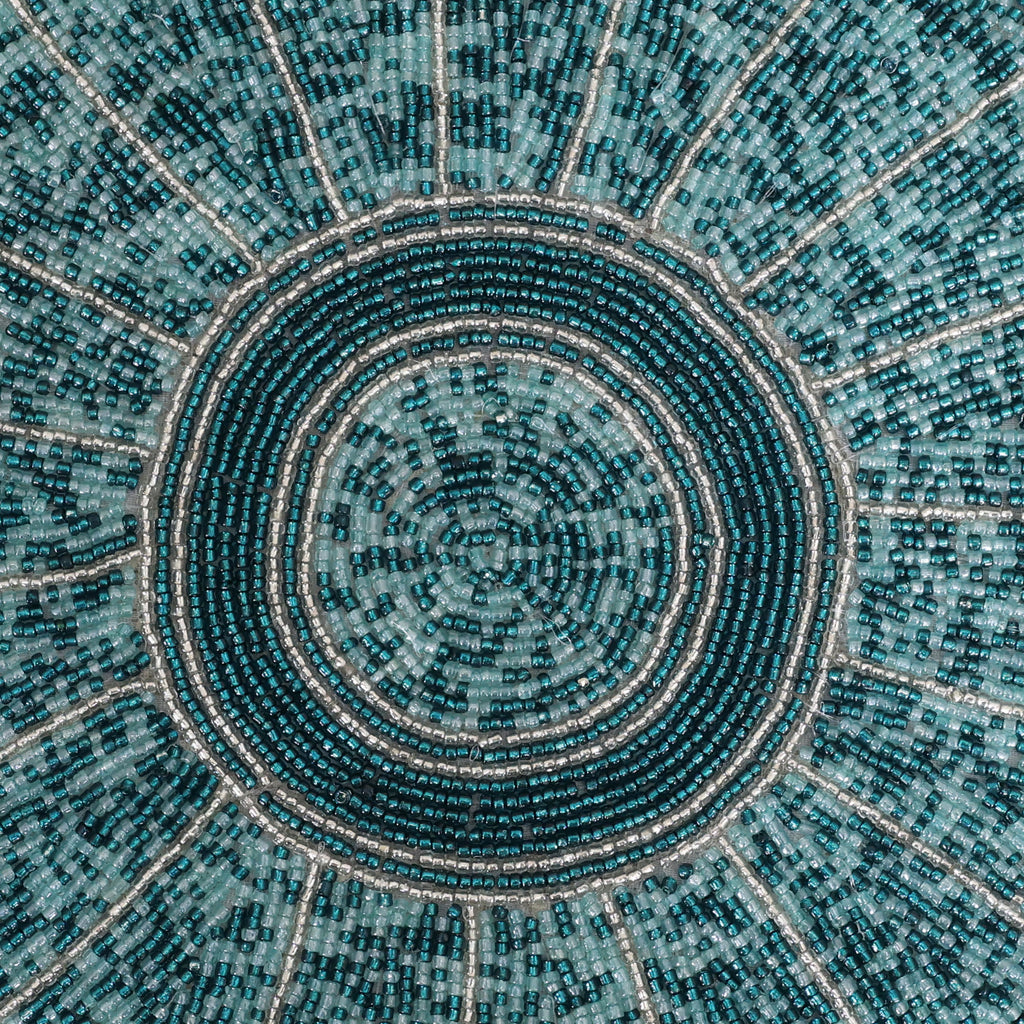 - The Ice Blue Rich Beaded Mat will give your coffee or dining table a touch of refinement.