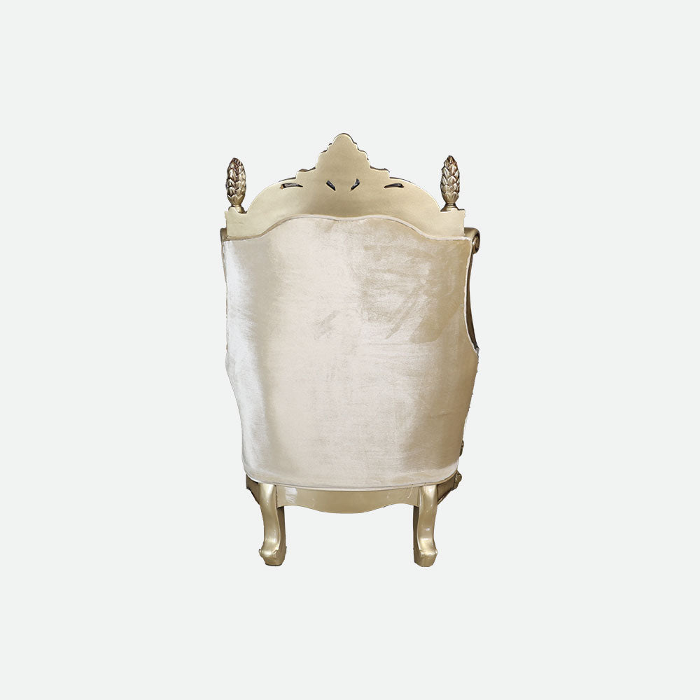 - The Apsara set adds timeless elegance and royal charm with its elaborate carvings, plush furnishings, and regal high-back shape.