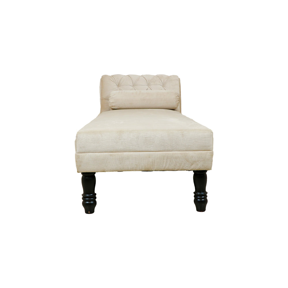 - The seat, back and armrests are thickly padded, which makes the chaise lounge very comfortable, and the sturdy wooden feet contribute to the stability of the construction.