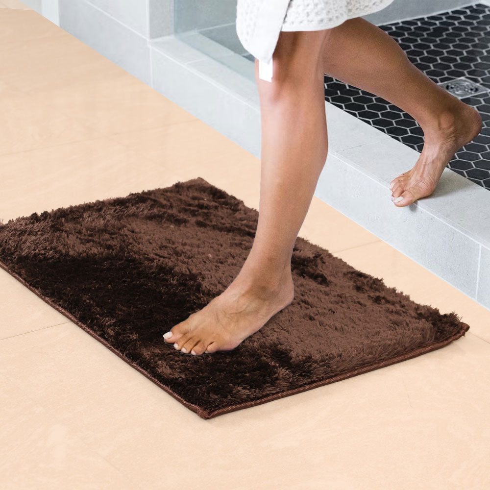 - Using the MAARK Dark Brown Plush Bathmat, you may enter a world of comfort and style that will improve the appearance and feel of your bathroom.