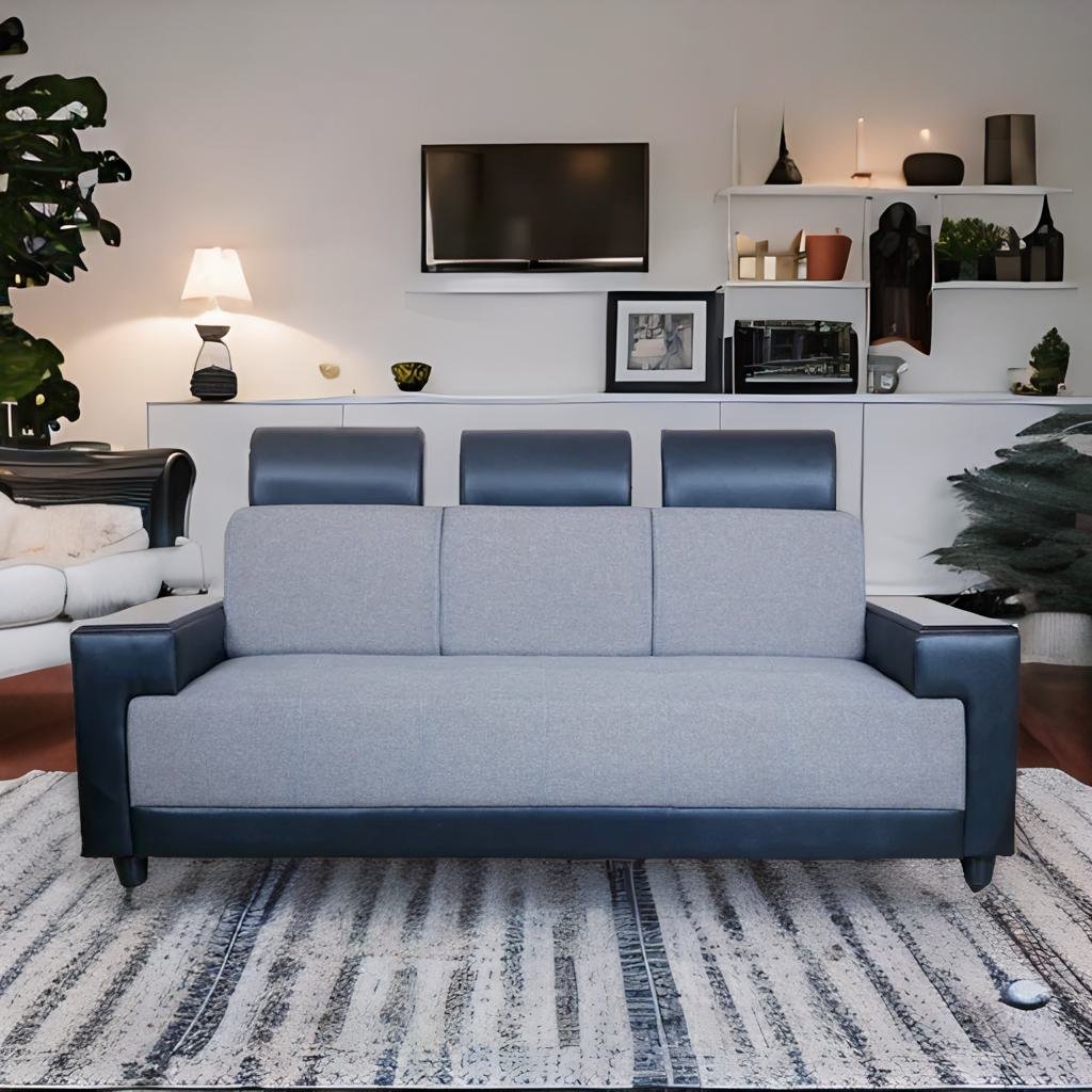 Because of its two-tone leatherette fabric finish, this three-seater sofa not only looks modern and contemporary, but it also reflects luxury.