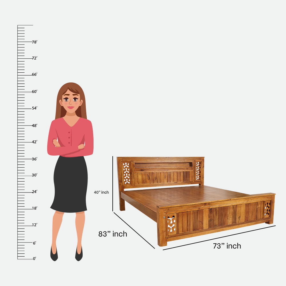 - This bed features unique footboard and headboard designs with handcrafted wooden inlays that give it personality and flair.