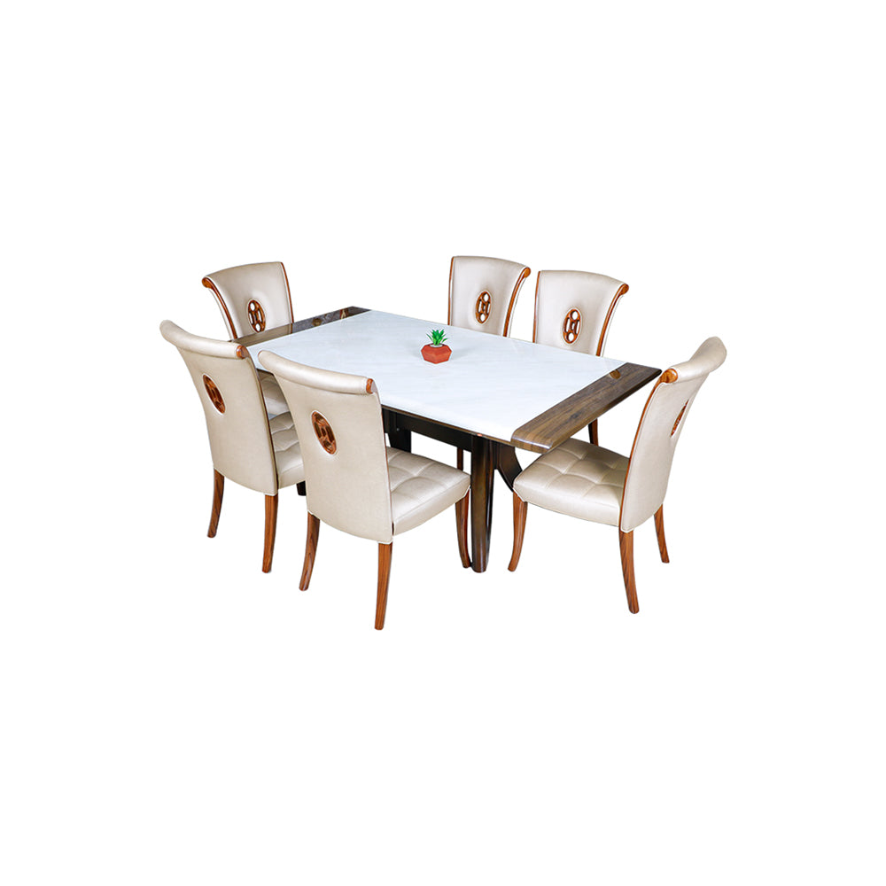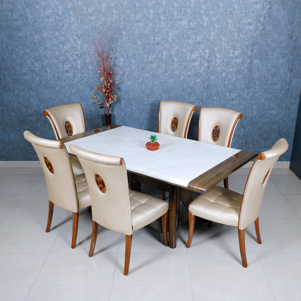 MAARK MARBLE TOP 6-SEATER DINING SET: