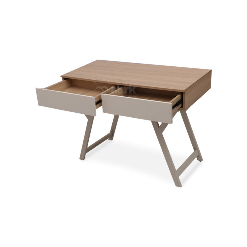 - The table consists of two slim drawers for storing files.