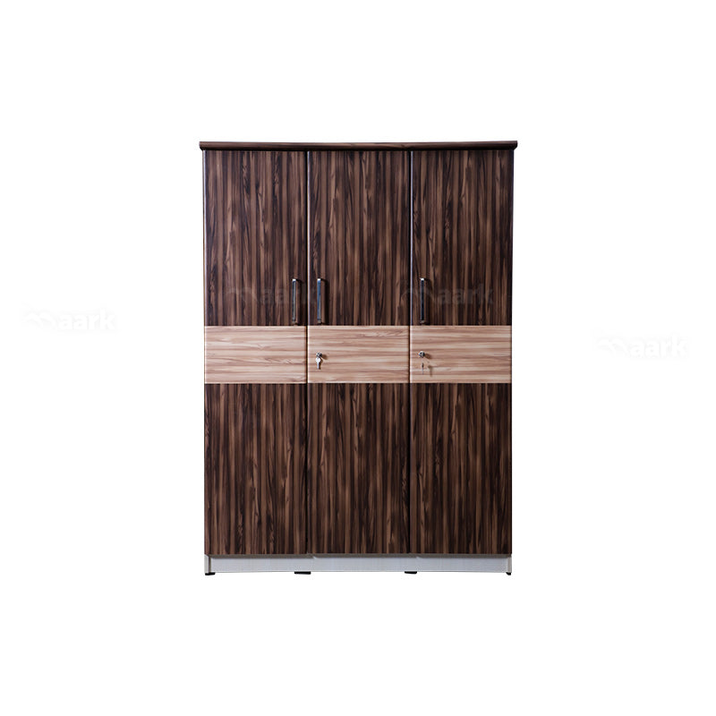 The maark three-door wardrobe has a protective plastic dressing for long-lasting durability and is protected with melamine materials.