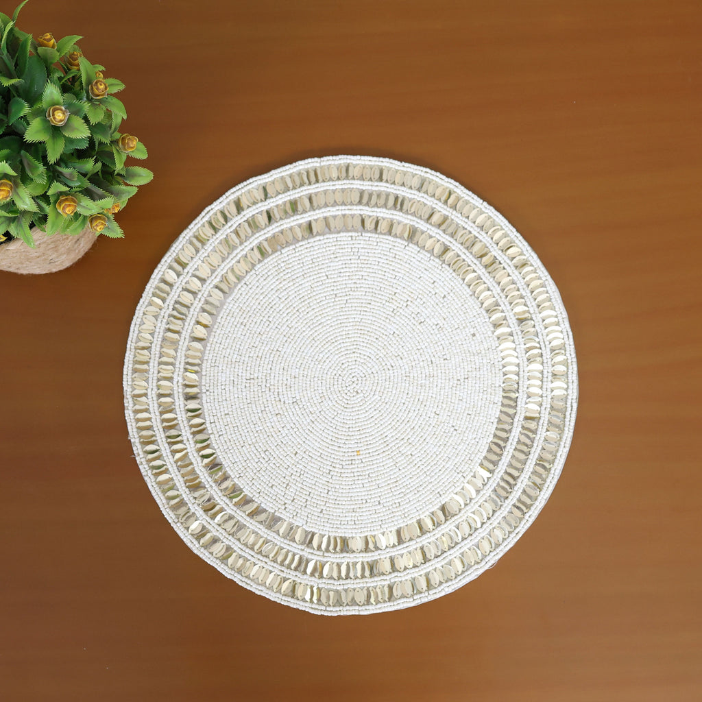 Maark Round Cream & Golden Beads Table Mat :