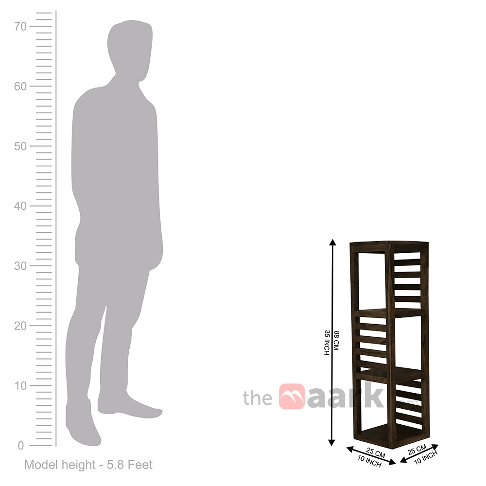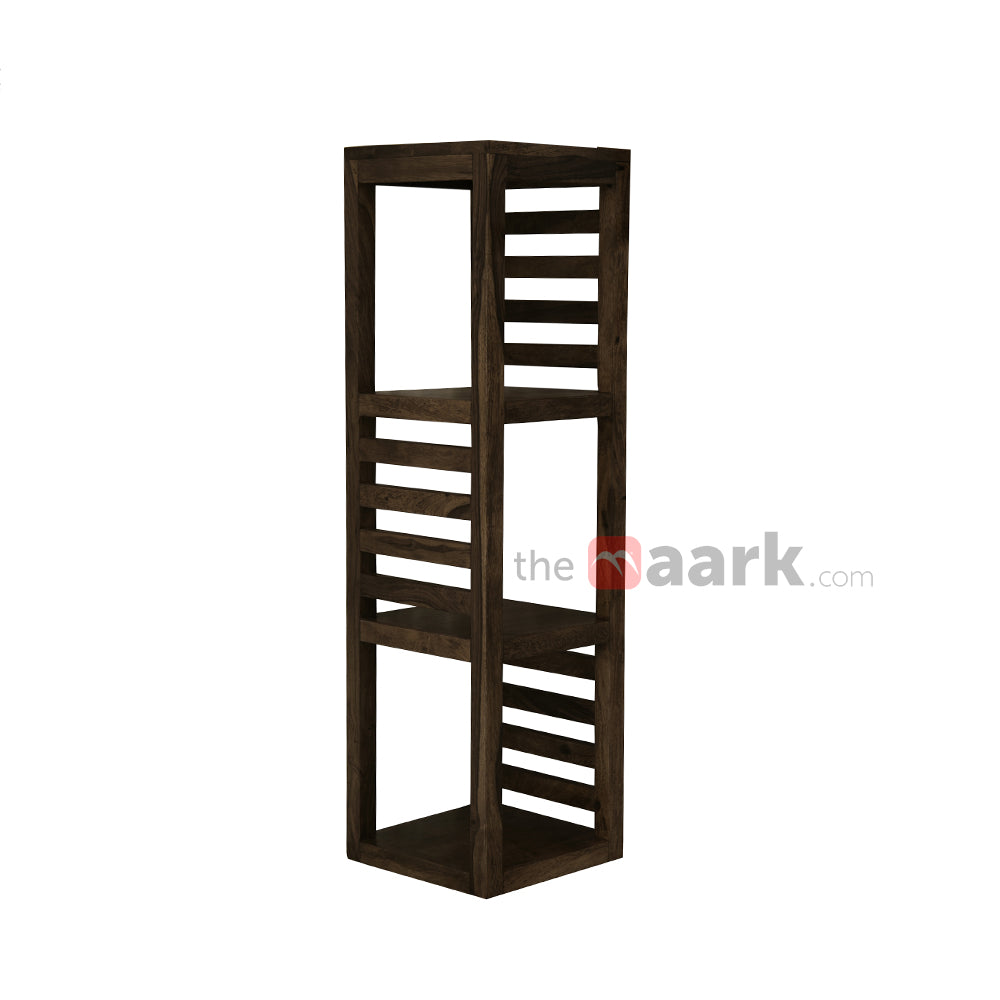 This rustic brown finish display unit for home features 3 three-sided steps display which makes this wooden bookshelf a perfect place for your favorite books, family photos, decorations, plants, utensils, and many other items.