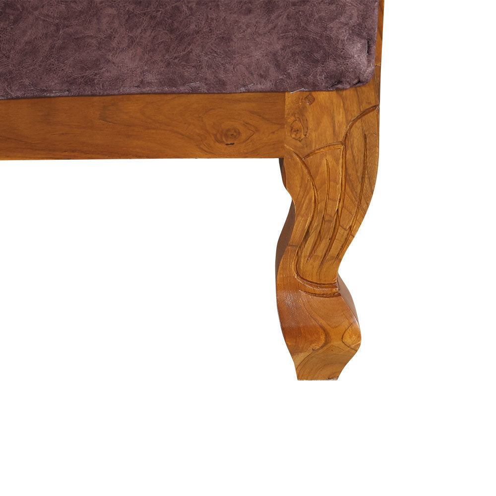 - The luxurious fabric is complemented by the elaborate wood carvings on the base and legs, which not only provide comfort but also add style.