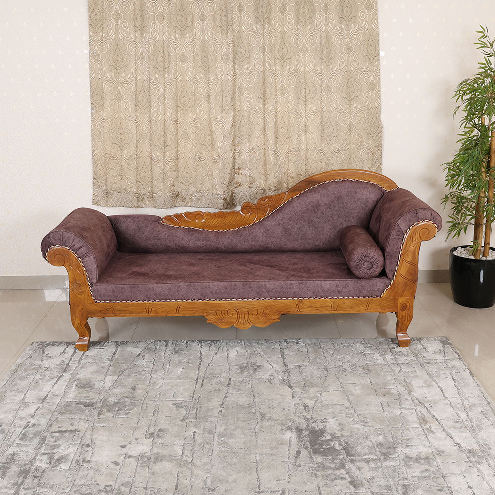 - This diwan-style sofa gives a royal touch to any living room or hallway with its classic wood frame and rich, textured fabric covering.