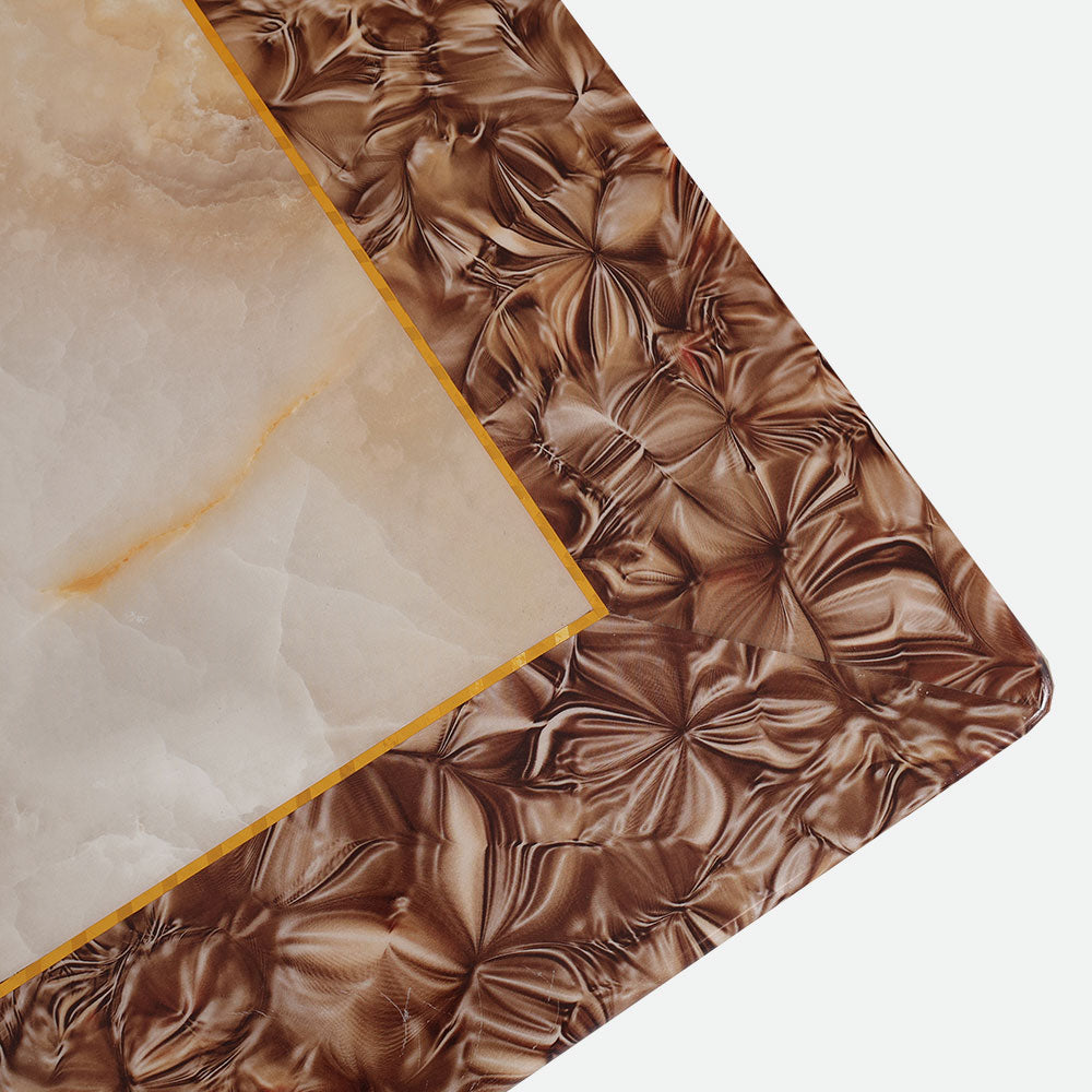 - Designed to add a touch of luxury to your home, this set features a high-quality marble tabletop with a smooth, glossy finish that enhances its rich, natural patterns.