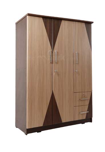 The maark three-door wardrobe has a protective plastic dressing for long-lasting durability and is protected with melamine materials.