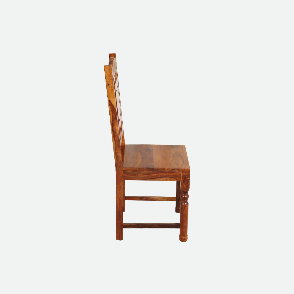 - Made from high-grade Sheesham wood, this dining set showcases exceptional craftsmanship, natural wood grains, and a sturdy structure that lasts for years.