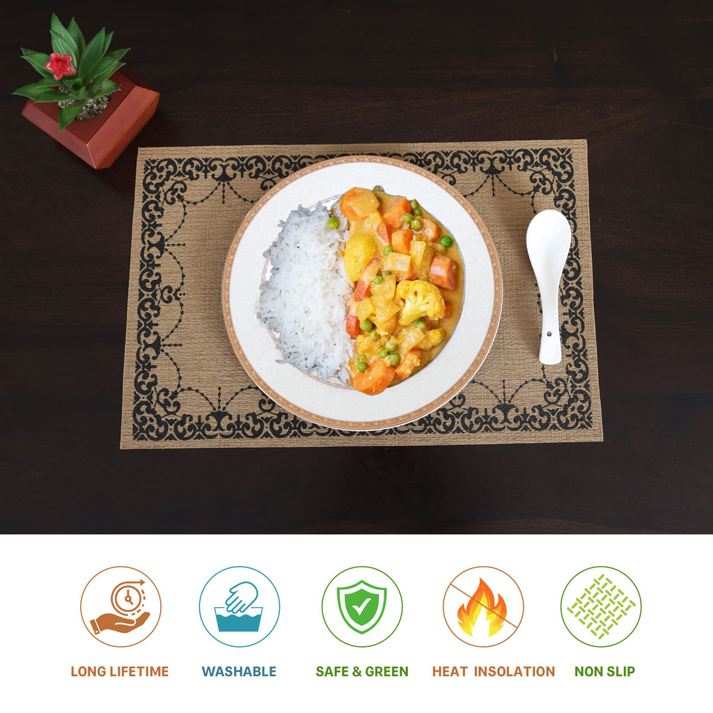 - The Elegant meal Placemats with Brown Floral Design (Pack of 6) will enhance your meal experience.