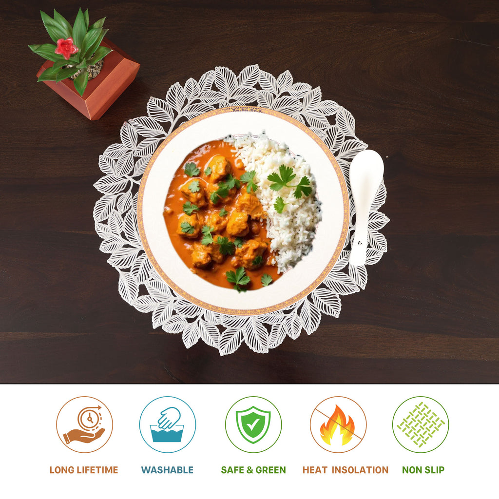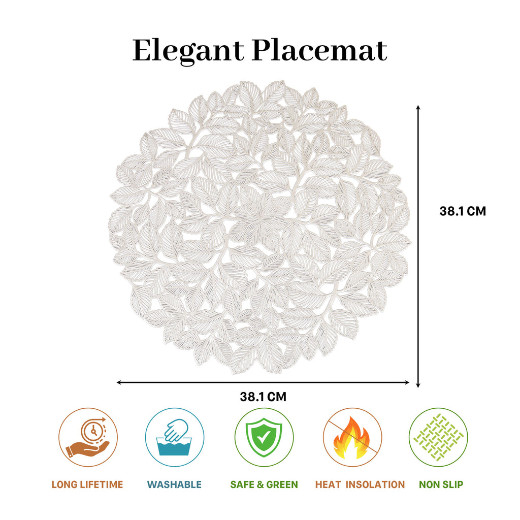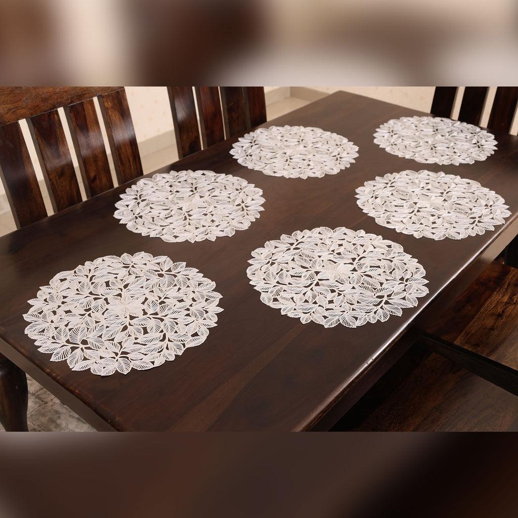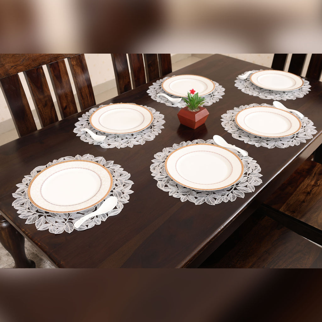 - The Silver Round Cut Floral PVC Dining Mat - Pack of 6 will provide style and protection to your dining table.