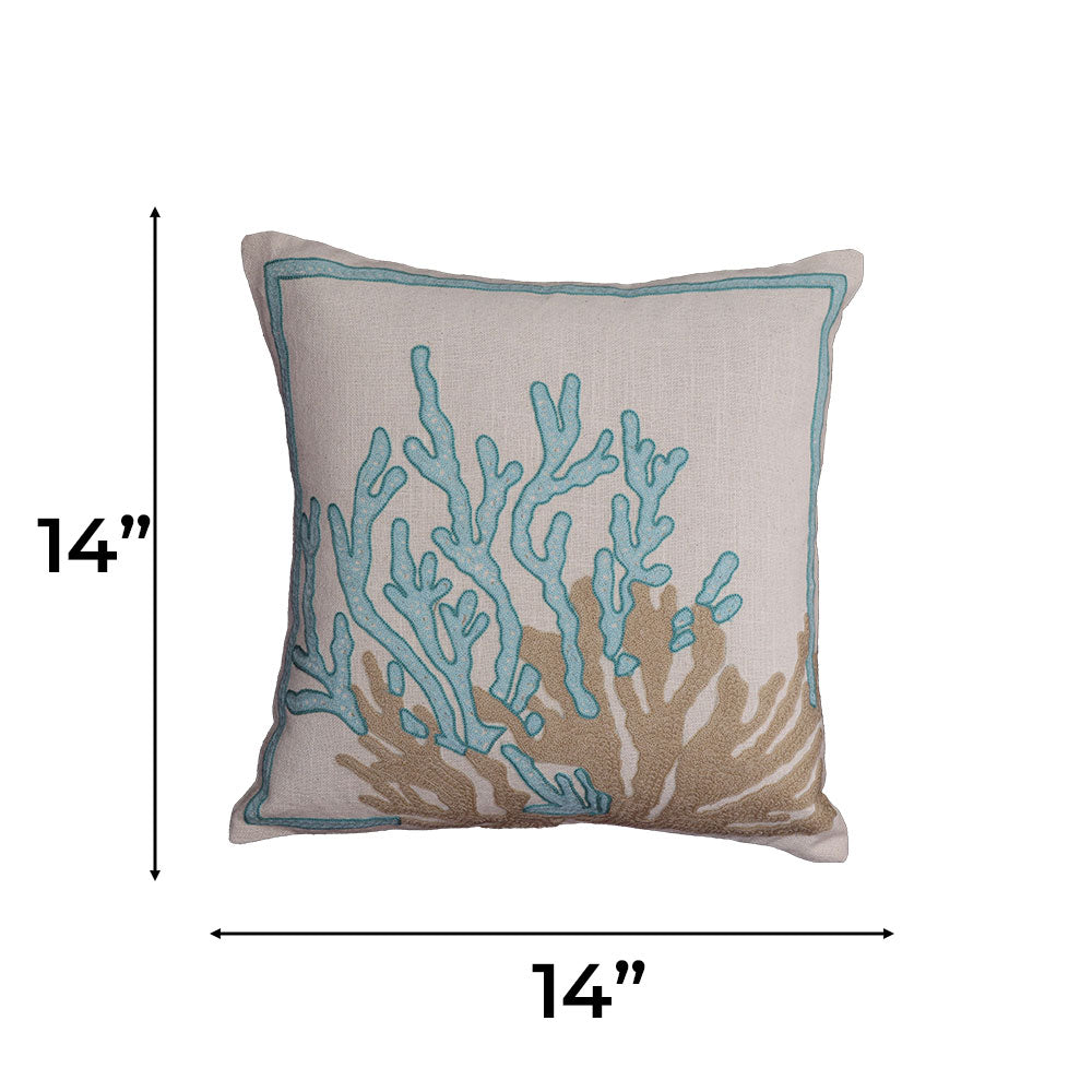 - This Soft Cotton Blend Coral Embroidered Cushion will enhance the style and comfort of your living area.