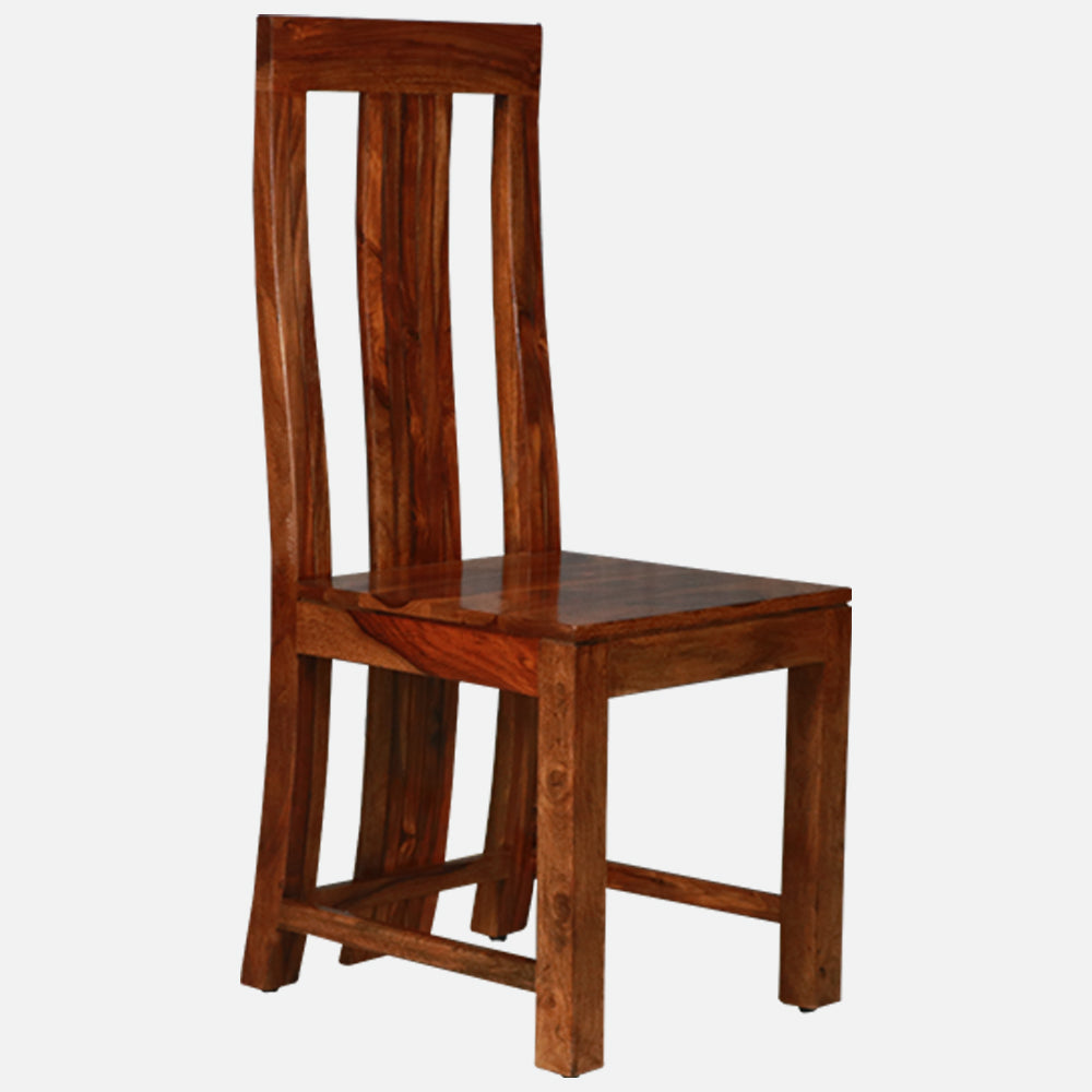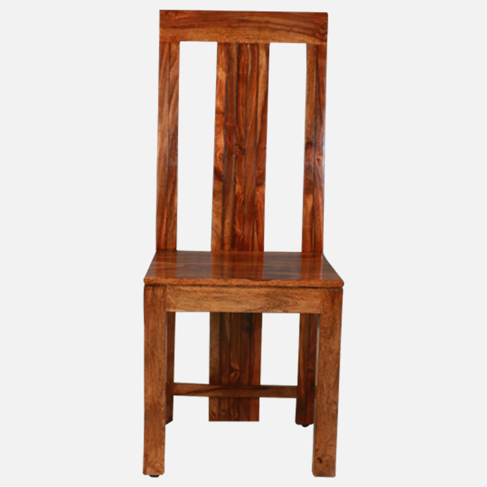 - The simplistic and elegant design, accentuated by a teak finish, is supported by solid sheesham wood construction.