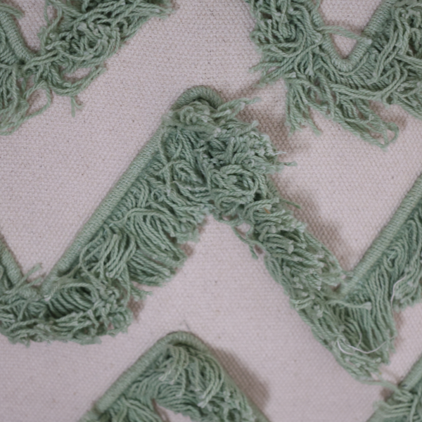 - This cushion showcases a textured geometric design in calming green and white hues, enhancing the style and comfort of any sofa, bed, or lounge area.