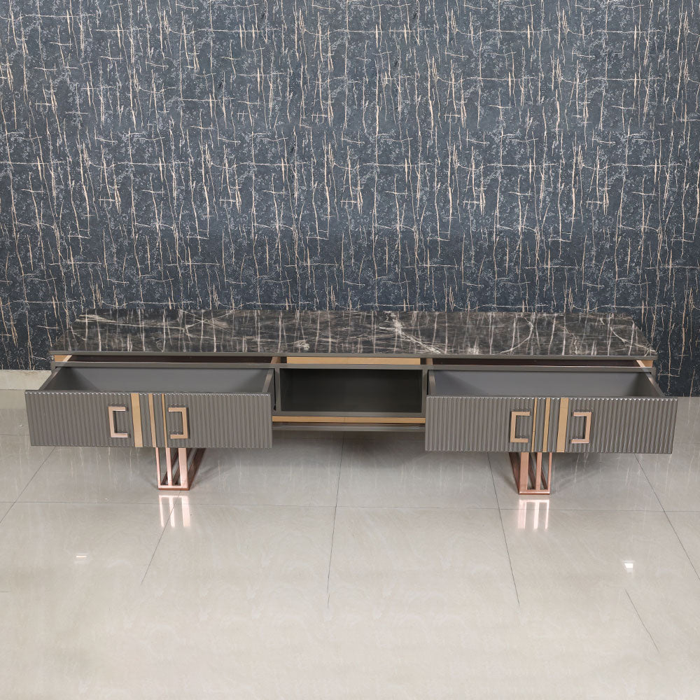 - Its sturdy rose gold metal legs guarantee longevity and offer a luxurious touch. This unit is both practical and stylish, making it perfect for small and medium-sized living spaces.